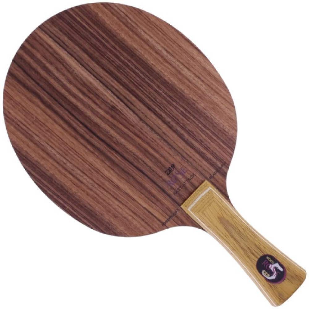 Основа для ракетки 729 Rose 5 - п'ятишарова дерев'яна основа класу OFF+ для атакуючих гравців. Верхній шар (шпон) – це рожеве дерево. Має велику ігрову пляму та дзвінкий відскок. Володіє досить швидкісними показниками, як для дерев'яної основи. Стане відмінним вибором для гравців, які заточені під швидку контратакувальну гру біля столу. Незважаючи на середню вагу, в руці відчувається як досить легка та комфортна; не обтяжує кисть, запобігаючи травмуванню. Шари: троянда + ялина + аюс + ялина + троянда. Має легкий аромат паленого дерева.