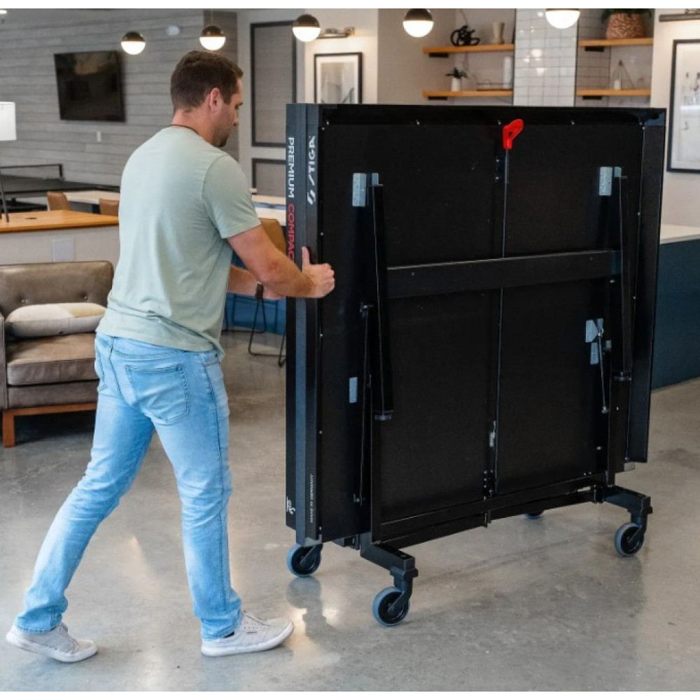 Легке транспортування - транспортуйте тенісний стіл Stiga Premium Compact за допомогою 4-х коліщаток (діаметр 125 мм) з гумовою протекторною поверхнею для вертикального транспортування.