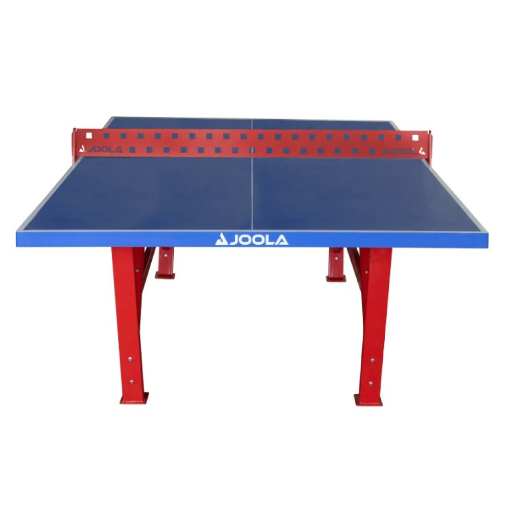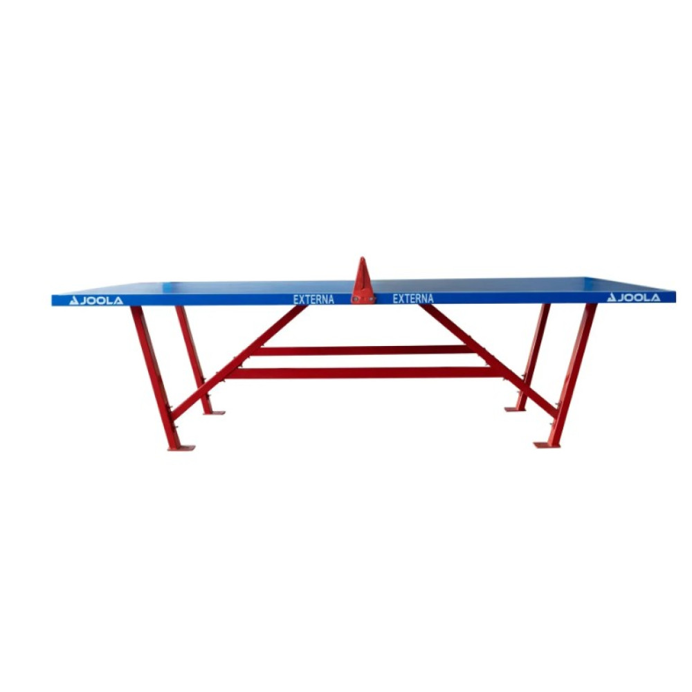 Стіл JOOLA Externa виготовлений з поліестеру, армованого скловолокном і має міцну оцинковану сталеву базову раму. Гладка і дуже рівна ігрова поверхня забезпечує ідеальні умови гри. Стіл абсолютно стійкий до атмосферних впливів і нечутливий до морозу, спеки та температурних коливань, що робить його ідеальним для постійного використання на вулиці. Крім того, у комплект входить сітка та дюбелі для кріплення до землі для забезпечення максимальної стійкості. Ідеально підходить для громадських місць, шкільних майданчиків і кемпінгів завдяки міцній конструкції.